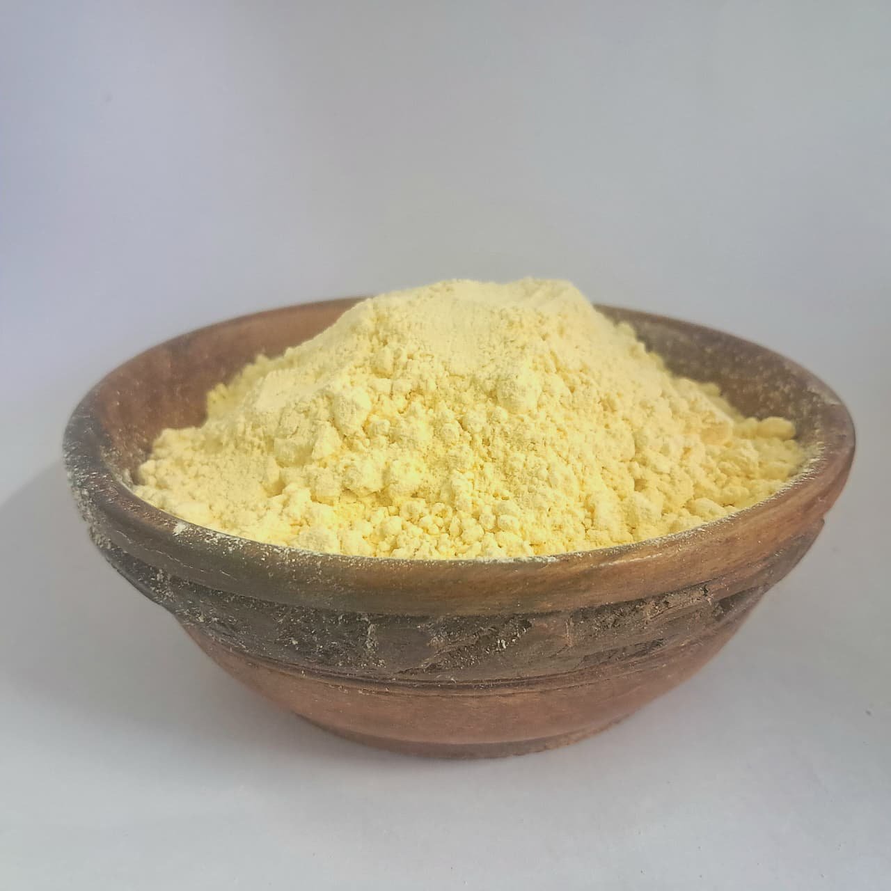 Besan (gram flour) is made from ground chickpeas and is rich in protein and fiber. It supports digestion, boosts energy, and is widely used in snacks, curries, and sweets.