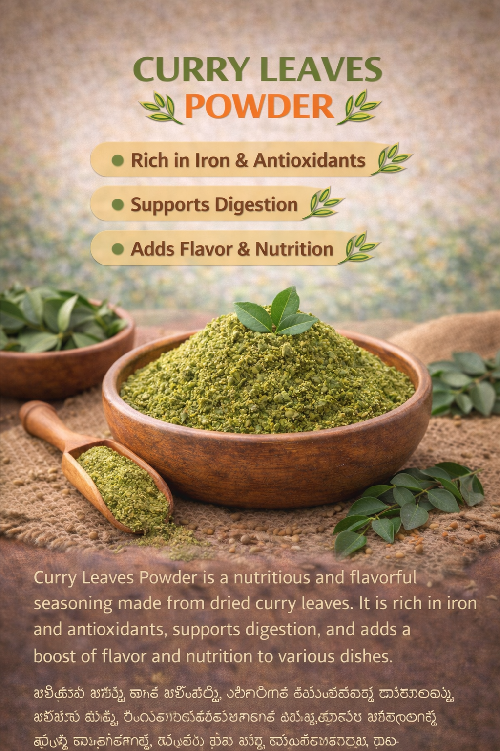 Curry Leaves Chutney is a healthy and flavorful blend made from fresh curry leaves. It is rich in iron and antioxidants, supports digestion, and adds a delicious taste to everyday meals.