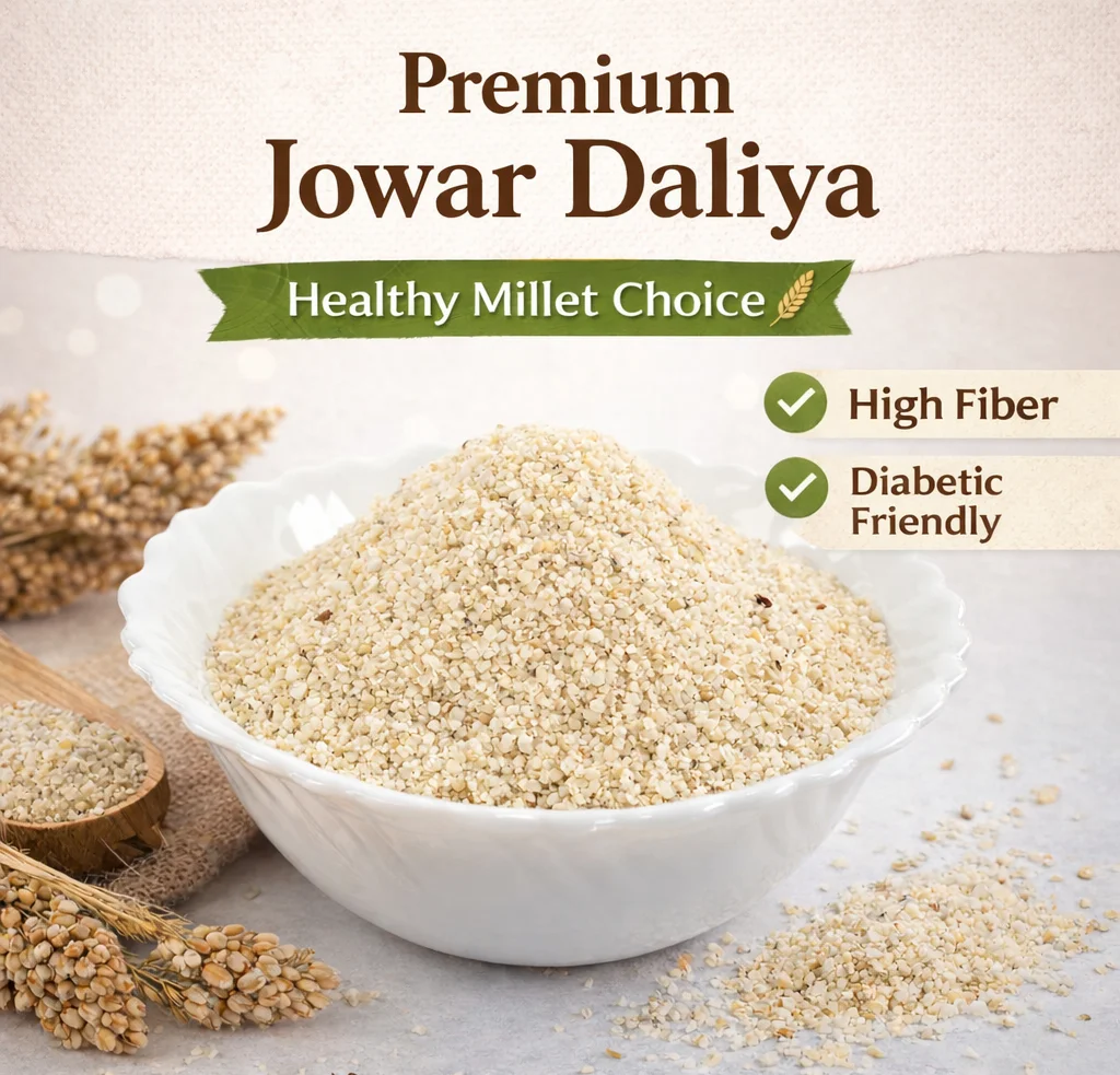 Our premium Jowar Daliya is crafted to offer the perfect balance of taste and health benefits. Made from carefully selected high-quality sorghum grains, this wholesome ingredient is rich in fiber and naturally gluten-free, making it an ideal choice for individuals seeking to embrace a nutritious and holistic diet. Whether you’re aiming to improve digestion, regulate blood sugar levels, or manage weight effectively, our Jowar Daliya supports all these goals while being incredibly versatile in its uses.